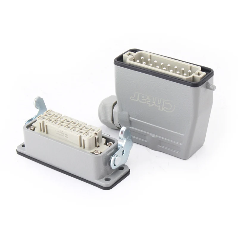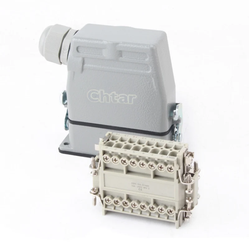 Во споредба со HE-016, издржливиот 16А 10 пински вметнат приклучок за тешки задачи на CHTAR е мини верзија со 16 пински. Може да работи и на помал простор. Тие обично се склопуваат заедно со алуминиумското куќиште HA-016. Тие се направени од компјутер со висока јачина и внатре имаат иглички обложени со месинг сребро. Има 16 пинови поврзани со 16 жици. Нашата фабрика се наоѓа во градот Yueqing, провинцијата Жеџијанг, Кина. Ние произведуваме тешки конектори повеќе од 10 години и имаме над 15 години искуство во извозната трговија. Со нетрпение очекуваме да станеме ваш доверлив долгорочен партнер во Кина.