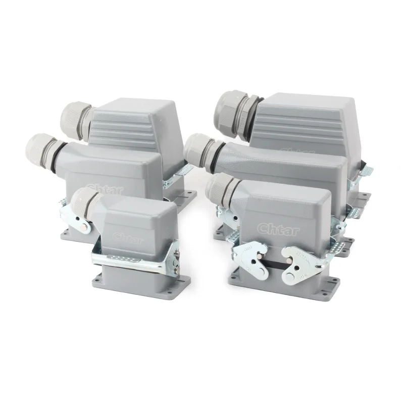 Издржливите 24 пински AG Heavy Duty конектори дизајнирани и произведени од CHTAR се погодни за 24-пински HE, HD, HEE, HDD и други тешки конектори. Конекторот е изработен од алуминиумска легура и обложен со сив прав RAL7037. Неговата работна струја е 16А, работниот напон е 500VAC, опсегот на работна температура е од -40℃ до +125℃ (-40℉ до +257℉), циклусите на приклучување и исклучување се 500 пати, а степенот на заштита е IP65.