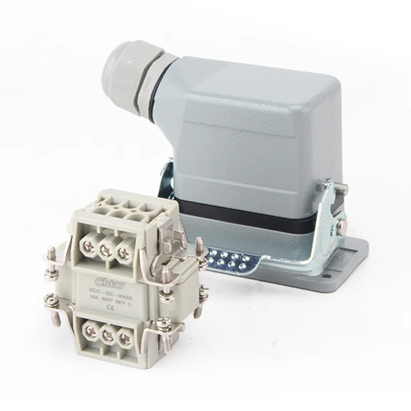 Овие CHTAR 6 пински AG конектори за тешки должности широко се користат со HE HD HEE, HDD. Тоа е основно и женско куќиште дел од тешките приклучоци. Изработен е од алуминиум и дизајниран како единечна тока. Кориснички тип на тешки терминални блокови.