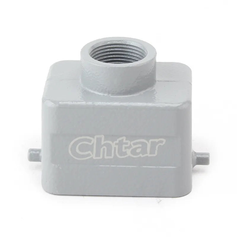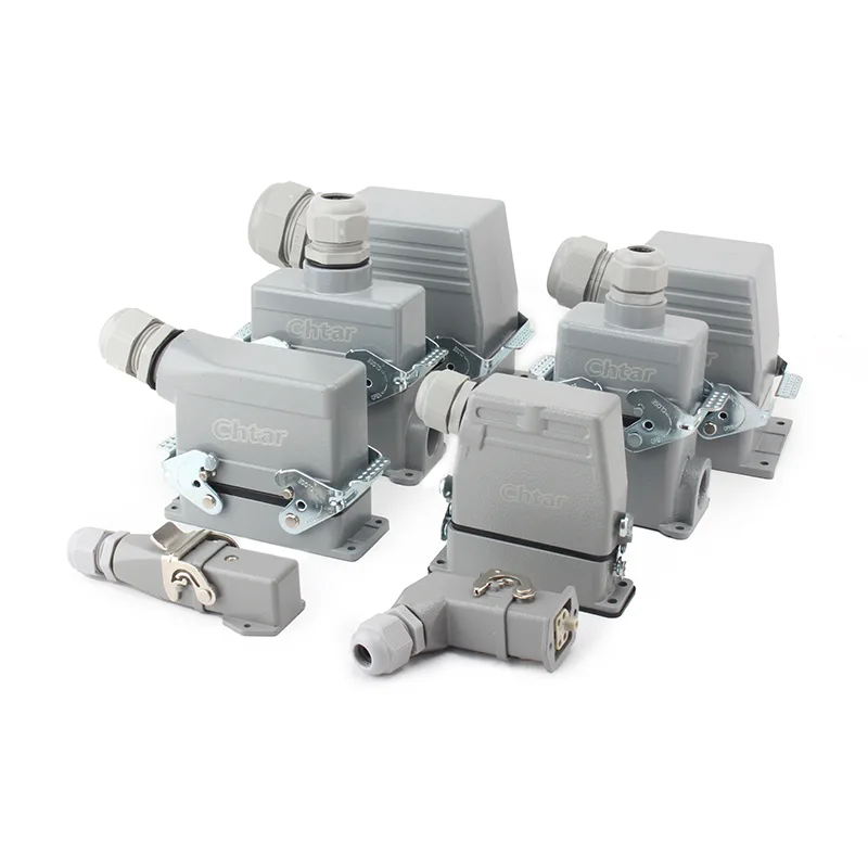 HE Тешките конектори се произведуваат за различни тешки услови и широко се користат во робусни, сигурни електрични приклучоци и машини за инјектирање и така натаму. Изработен е од алуминиум со обложен во прав и е квалитетен за заштита за надворешна употреба. исто така може да ги заштити од механички стрес и да спречи агресија на вода и прашина.