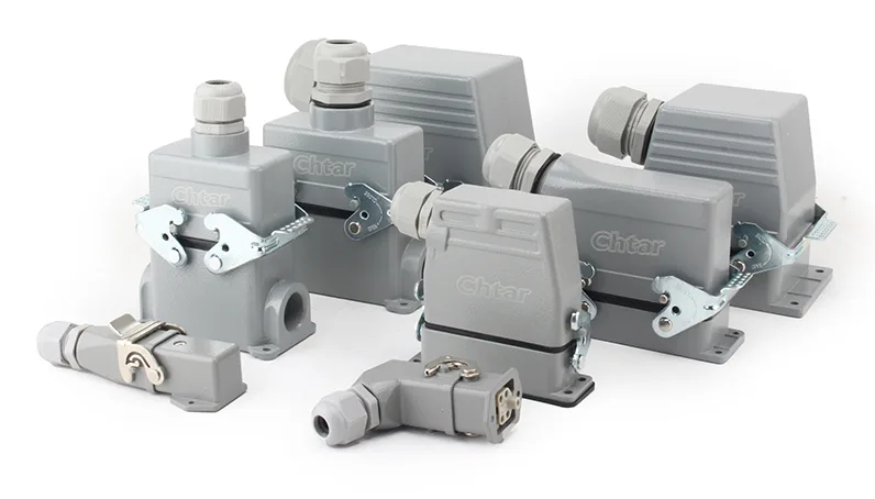 CHTARможе да обезбеди целосен опсег на тешки конектори за куќиште. Има куќиште кое одговара на HA, HE, HD, HEE и HDD, и така натаму сериски тешки конектори. Тие исто така работат со различни пинови, како што се 3, 4, 5, 6, 10, 16, 24, 32 и 48 и така натаму. Фабриката може да биде снабдување со различни правци на жици.