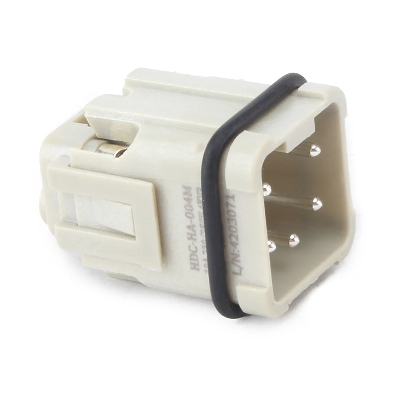 M HA 4 пински вметнување Тешки конектори работат под струја од 10А. Тоа е 4+1 пинови за контакт со жици. Се произведува за различни тешки услови и широко се користи во различни индустрии, автоматска индустрија.