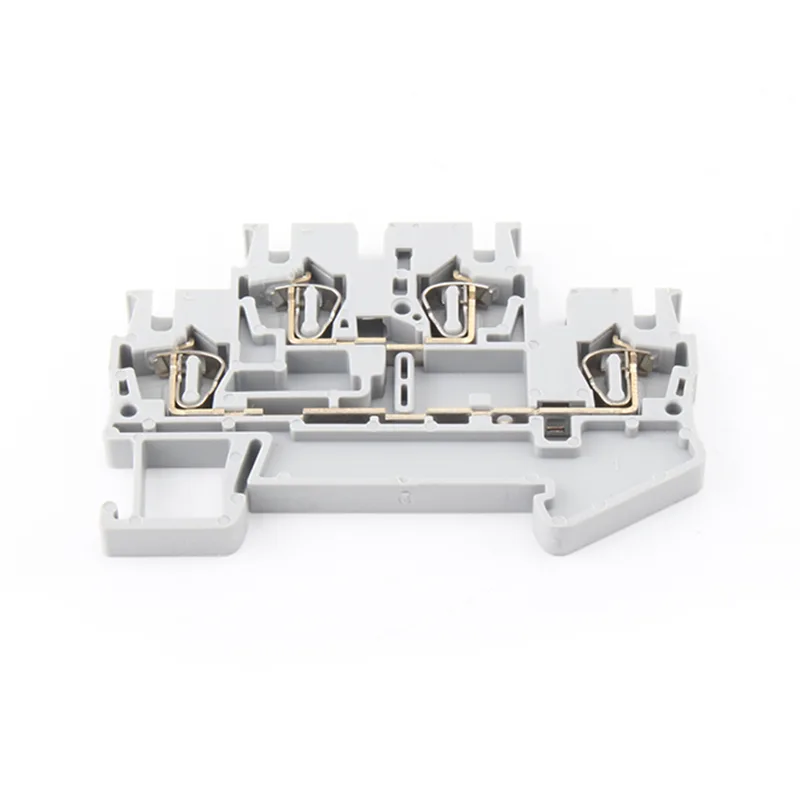 CHTAR STTB2.5 пружинскиот DIN железнички терминален блок се справува со овој предизвик преку неговата конструкција на две нивоа што заштедува простор и извонредна компатибилност со различни конфигурации на жици. Нејзините точки за поврзување со пружински стегачи имаат широк опсег: цврсти проводници од 0,08 mm² до 4,0 mm² (AWG 28-12) и заглавени жици до 2,5 mm² - со или без ферули. Ова значи дека можете да ракувате со сè, од чувствителни сензорски сигнали до позначајна контролна моќ во една унифицирана компонента, драматично поедноставувајќи го распоредот на вашиот панел. За проекти кои бараат и густина и флексибилност, тоа е ефикасно решение. Обратете се кај нас за да разговараме за тоа како може да ги задоволи вашите специфични потреби за жици.