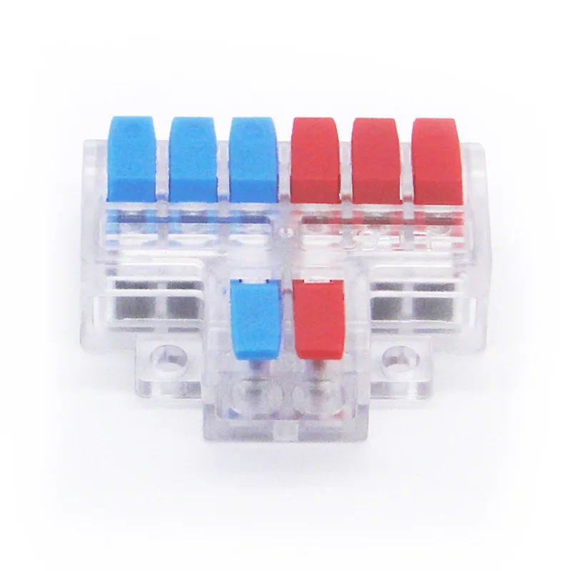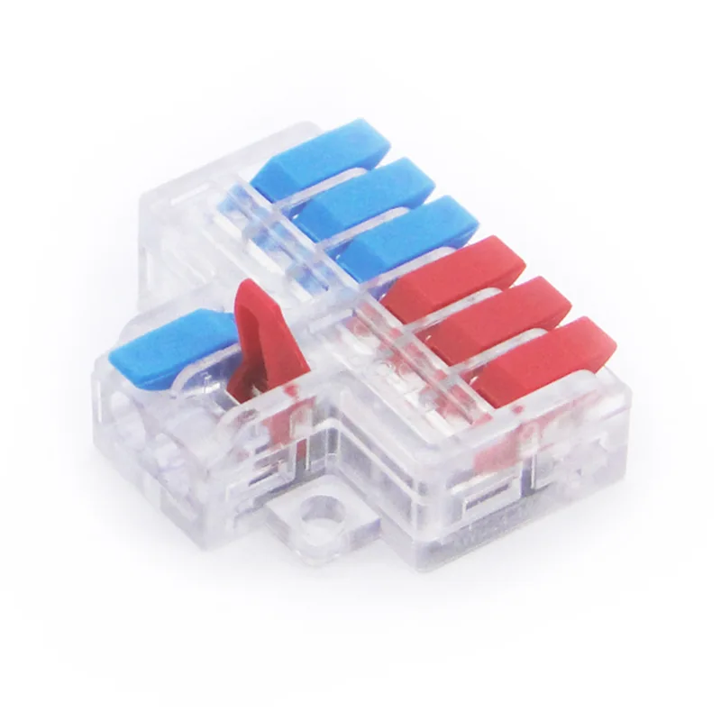 Во современите електрични системи и системи за автоматизација, врските за поврзување на кола стануваат сè покомплексни, а едноставните паралелни линии или еднонасочната дистрибуција повеќе не можат да ги задоволат барањата. Висококвалитетните брзи конектори за спојување на жица со две-во четири излези на CHTAR, кои се конектори за структурата со повеќе жица во и со повеќе жица, можат да ги решат овие проблеми. Големината на жиците што ги поврзува се движи од 0,5 mm² до 6 mm². Оваа серија поврзува жици со големи димензии, со максимум 6mm². Постојат две опции: 2P и 3P. Главната линија е конфигурирана со 2P и 3P, а потоа се разгранува во две или три помошни линии. Тој оди подалеку од една функција, дозволувајќи им на инженерите да постигнат непотребно паралелно поврзување на двојни напојувања, независно разделување на сигналот или конвергенција и интеграција на различни линии на еден физички јазол. Ова е еквивалентно на воспоставување тродимензионален транспортен центар на „раскрсницата“ на колото, што овозможува пренос на енергија и сигнали!
